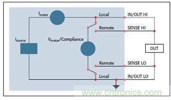 圖2:SMU儀器作為恒流源和伏特計的配置,用於測量DUT的響應