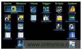 吉時利2450型交互式數字源表SMU儀器簡化了非傳統用戶的學習曲線,使之從使用多層菜單結構和多功能按鈕配置功能的繁瑣工作中解脫出來。2450型xing儀yi器qi使shi用yong基ji於yu圖tu標biao的de平ping麵mian菜cai單dan係xi統tong,就jiu像xiang在zai智zhi能neng消xiao費fei電dian子zi產chan品pin中zhong使shi用yong的de菜cai單dan係xi統tong一yi樣yang簡jian單dan,如ru平ping板ban電dian腦nao或huo智zhi能neng手shou機ji上shang顯xian示shi的de應ying用yong圖tu標biao排pai列lie。