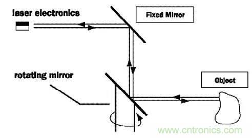這套發射/接(jie)收(shou)組(zu)件(jian)和(he)旋(xuan)轉(zhuan)鏡(jing)麵(mian)結(jie)合(he)在(zai)一(yi)起(qi),能(neng)掃(sao)描(miao)至(zhi)少(shao)一(yi)個(ge)平(ping)麵(mian)。鏡(jing)麵(mian)不(bu)隻(zhi)反(fan)射(she)二(er)極(ji)管(guan)發(fa)出(chu)去(qu)的(de)光(guang),而(er)且(qie)也(ye)能(neng)把(ba)反(fan)射(she)回(hui)來(lai)的(de)光(guang)再(zai)反(fan)射(she)給(gei)接(jie)收(shou)器(qi)。通(tong)過(guo)旋(xuan)轉(zhuan)鏡(jing)麵(mian),能(neng)夠(gou)實(shi)現(xian)90到180度的視角,並且大大降低係統設計和製造的複雜度,因為鏡麵是這裏麵唯一的運動機構。
