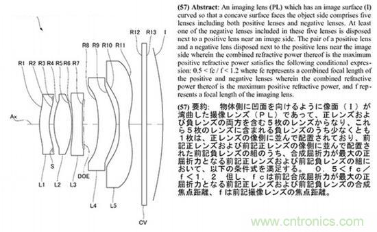 隨後在2013年4月索尼公開了新的曲麵傳感器專用鏡頭專利,新專利對鏡頭像麵彎曲問題進行了優化修正。