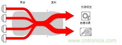 前置機器視覺攝像頭更是需要多個副本,但它將很快適用於自主車輛的附加攝像頭、雷達和光線檢測/測距(LIDAR)傳感器。數據記錄是一個當今非常常見的複製應用(圖1)。在zai機ji器qi視shi覺jiao應ying用yong中zhong,通tong常chang記ji錄lu某mou些xie行xing車che狀zhuang況kuang的de原yuan始shi傳chuan感gan器qi數shu據ju,以yi用yong於yu未wei來lai分fen析xi。這zhe種zhong情qing況kuang下xia,擁yong有you聚ju合he原yuan始shi傳chuan感gan器qi數shu據ju的de第di二er副fu本ben,並bing將jiang其qi用yong於yu數shu據ju記ji錄lu,是shi大da有you裨bi益yi的de;而另一個副本則用於機器視覺處理。