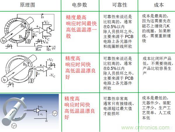 注:閉環電流傳感器、開環電流傳感器、電動汽車電流傳感器對比圖