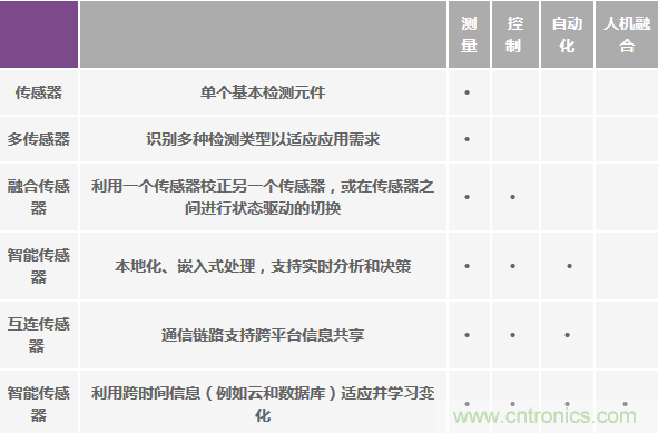 表4.以高質量傳感器為基礎,日益提升的集成度和智能程度推動自動化和人機融合