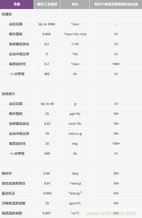 表6.工業MEMS器件對所有已知潛在誤差源進行全麵測定,通常能實現消費類器件高出一個數量級或更高的精度水平