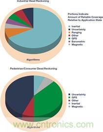 與yu其qi形xing成cheng鮮xian明ming對dui比bi的de是shi,工gong業ye導dao航hang定ding位wei推tui算suan方fang案an是shi針zhen對dui係xi統tong性xing能neng定ding義yi而er設she計ji的de,要yao根gen據ju具ju體ti精jing度du要yao求qiu選xuan擇ze組zu件jian。更geng高gao質zhi量liang的de慣guan性xing傳chuan感gan器qi允yun許xu其qi發fa揮hui主zhu要yao作zuo用yong,適shi當dang利li用yong其qi他ta傳chuan感gan器qi來lai縮suo小xiao不bu確que定ding性xing差cha距ju。比bi起qi推tui算suan/估算可靠的傳感器讀數間的位置,算法在概念上更關注最佳權重、切換和傳感器互補,以及對於環境和實時運動動力學的認識。