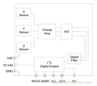 圖2:Kionix公司KXCJ9矽加速度計容納於在從第二貼合晶片在晶片級別創建一個密閉的腔。一個單獨的信號處理ASIC上安裝有傳感元件,以進一步降低傳感器的整體尺寸,產生了3&TImes;3&TImes;0.9毫米的LGA塑料封裝從1.8操作 - 3.6fuzhiliudianyuan。wenyaqiyongyubaochiduishurudianyuandianyafanweineihengdingdeneibugongzuodianya。zheyang,keyitongguoshurudianyuandianyadefanweineiwendingdegongzuotexing,yiconggonggeibianyiquchurenhecuowu,bingxiaochuleduiwaibudianyuantiaojie,jinyibujiangdileshejidezhengtichicun。