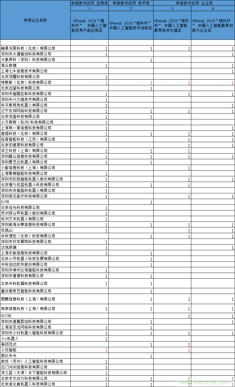 本次評選是2018年度唯一一項由權威行業門戶舉辦的重大賽事,全程免費,活動費用由評選組委會承擔,企業無須支付任何參評或獎項費用;評委團由各大投資機構、協會、院校、孵化平台以及著名投資人組成,嚴格把關;獎項覆蓋全人工智能產業鏈結構,設立4大獎項讓所有人工智能企業都有機會競逐獎項;並且參評企業還可以免費參與同期OFweek舉辦的中國人工智能大會,與資深專家和行業大咖麵對麵,學習最前沿、最熱門實用的市場趨勢及技術應用。