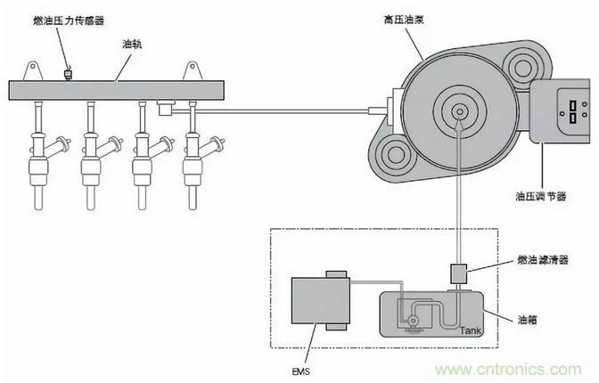 油軌壓力傳感器安裝於燃油分配器管路上。