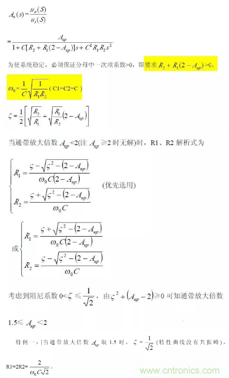 對於二階壓控低通濾波器來說,當通帶放大倍數Aup =1(單位增益)時,圖所示電路變為圖所示,其中RF=R1+R2。